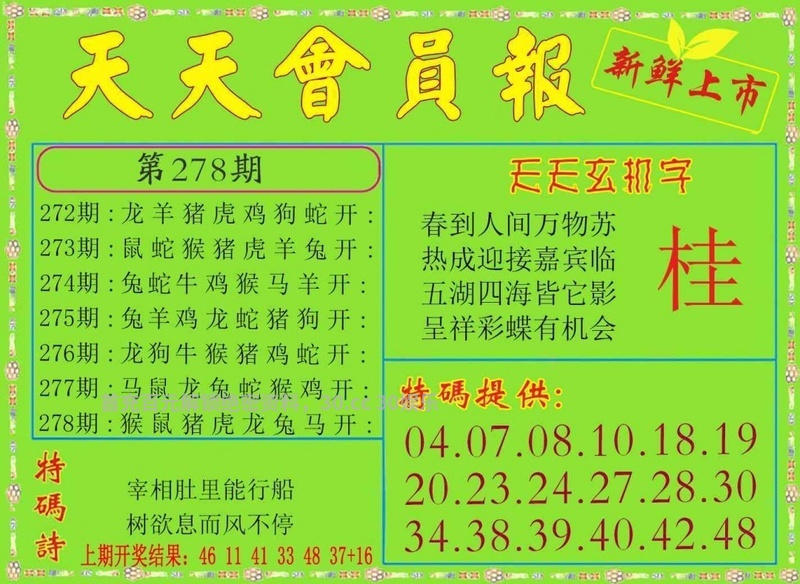 278期:╠平特一尾╣【4444】开:猴34准 |